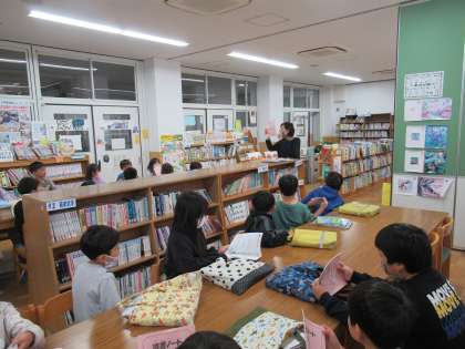 最後は、本を探すゲームに取り組み、分類整理について楽しく学ぶことができました。