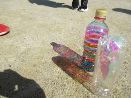 透明のプラスチック容器に色を塗って、光を通したときの色や形を楽しみます。