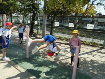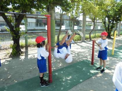 鉄棒あそびのよい季節です。