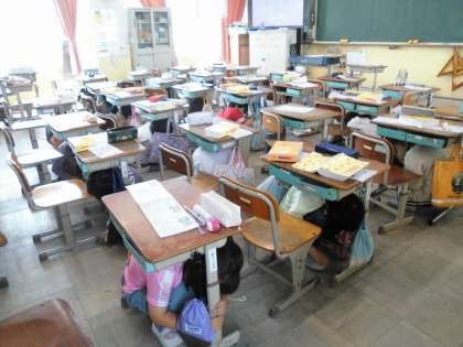 今日避難訓練がありました。最近、地震が多いので地震が起きた時に自分の身を守る方法について再度確認しました。ぜひ、お家でも家で地震が起きたらどうすればよいか話し合ってみてください。