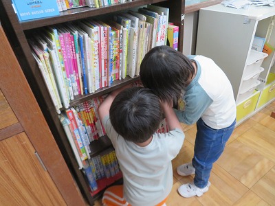 子どもたちが自然と本棚に