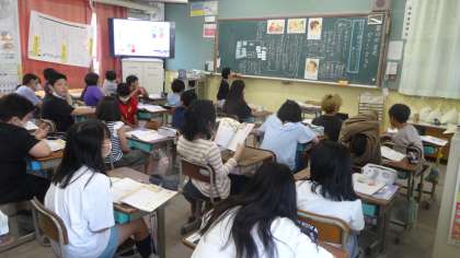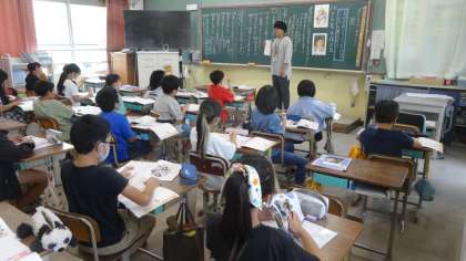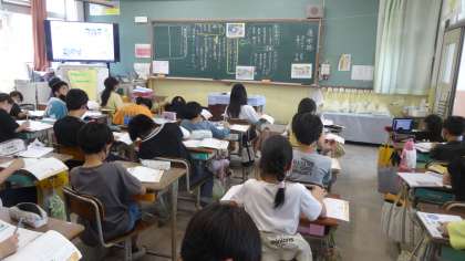 5年生の道徳の学習では、担任が各クラスを順番にまわりながら授業をしています。