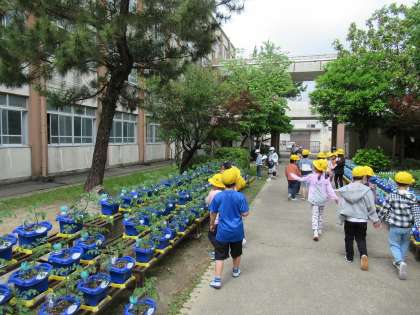 「走ったらあぶないよ」「こっちやで!」「2年生ではミニトマトを育てているよ」と、