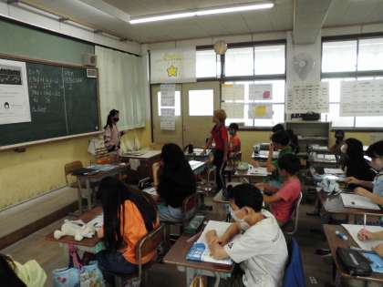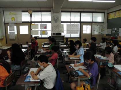 算数科の小数のかけ算では友だちとの学び合い活動を続けています。今日も子ども達が先生として前に立ち、説明をしていました。どんどん説明が上手になる5年生。これからも楽しみです。