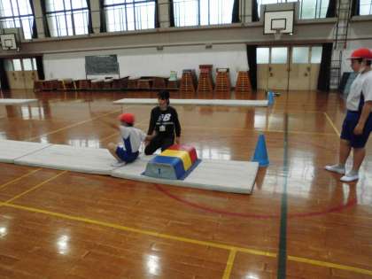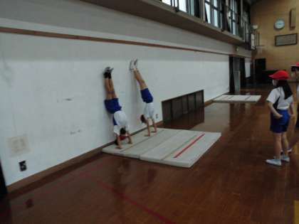 体育科ではマット運動の学習を進めています。今日はそれぞれ自分の練習したい技を選んで、特別な場所で練習をしました。どこを工夫するのか考えながら練習に取り組んでいました。