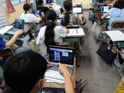 社会科の学習では国土の気候の特色について調べました。たくさんの資料の中から自分が気になる物を選び、じっくりと資料を読みます。GIGA端末を使って気づいたことをまとめ、友だちと交流しました。
