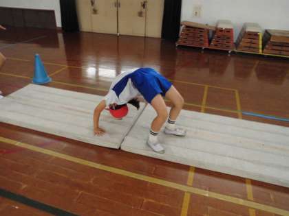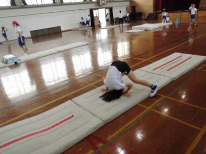 体育科の学習ではマット運動を進めています。回数を重ねて子ども達ができる技も増えてきました。友だちと話し合いながら、どうすれば上手にできるのかを相談する子ども達。どんどん上手になってきています。