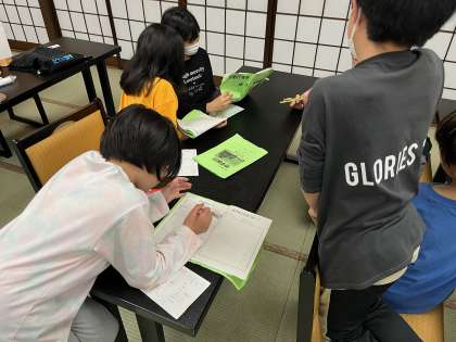 ?1日目最後の反省会をグループで行いました。明日もグループで協力、助け合いで頑張ってほしいと思います。