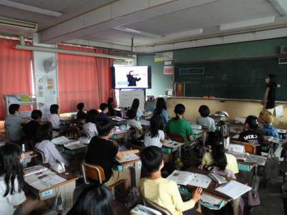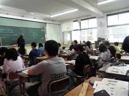 音楽の学習では鑑賞に取り組みました。弦楽四重奏を聴いて、バイオリンやチェロ、コントラバスといったそれぞれの楽器の音色を楽しみました。重なり合う旋律の良さを、思い思いの言葉で表現していました。