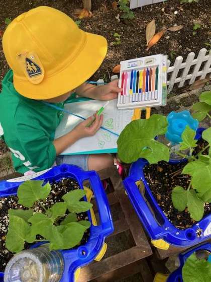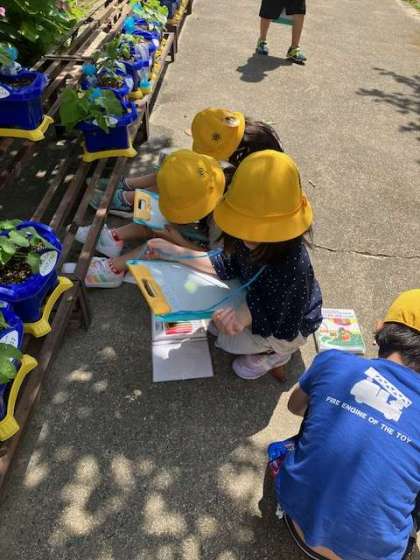 朝顔の観察をしました。観察するごとによく見て絵や文がかけるようになってきています。朝顔も子ども達もぐんぐんのびています。