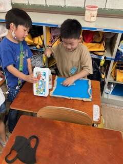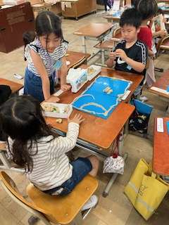 「ひもひもねんど」の学習が楽しかったようで終わった後も友達と一緒に粘土を楽しんでいました。