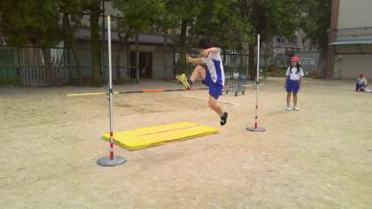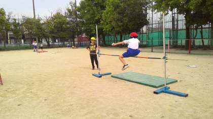 毎回とても楽しみにしている高跳び。記録だけでなく、踏み切り足の位置や跳び方なども意識して挑戦しています。仲間がバーを落とさずに跳べた時にはみんなで喜んだり、残念ながら跳べなかった時にはみんなでアドバイスしあったりと協力する姿が見られます。またローテーションで高さ調節や記録、合図など役割分担しています。One for all, all for one.ですね!!