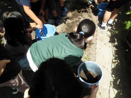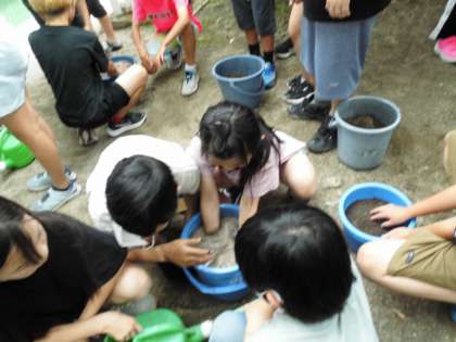総合的な学習の時間では羽束師の米について調べています。今日は本物の苗を植えました。本格的な土づくりから始め、子ども達は土に触れながら楽しく田植えができました。これから育てていくのが楽しみです。