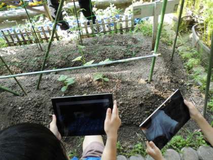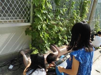 ツルレイシはツルがぐんぐん伸びて葉もたくさんしげっていました。