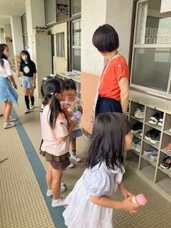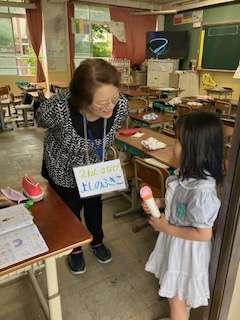 先生となかよくなる作戦は休み時間も続きます。休み時間もマイクを持って先生達に「インタビューいいですか。」と話しかけていました。