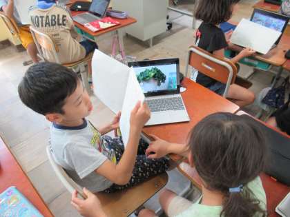 国語科「こんなもの、見つけたよ」の学習のまとめとして、自分たちが見つけたものを写真と言葉で伝えあいました。