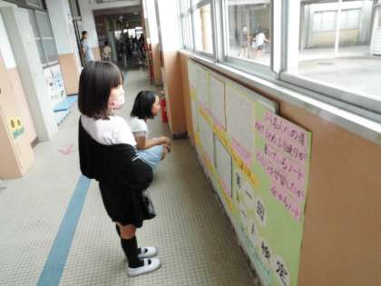 7月5日の昼休み、ノート検定の結果の掲示板前で