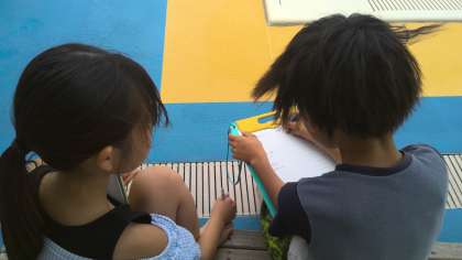 水泳学習も中盤です。きょうも水慣れの後、レベル別になり練習しました。自分の後半のめあてについて頑張る姿が見られました。また水泳見学者は友だちの泳ぎ方の良いところやマネしたいところなどを見学ノートに書いています。