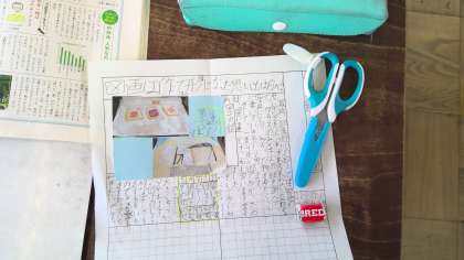記事を書き最終確認をし、清書をしました。新聞に写真を貼り付けたら「本物の新聞みたいになった!」と少し誇らしげな表情が見られました。どの記事を一番トップにしようかなど、一生懸命に考え、世界にたった一つの思いのとてもこもった新聞が出来上がりました。