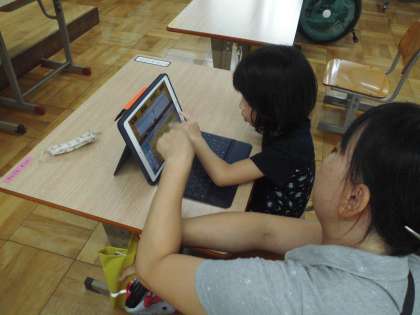 1年生は、タブレットを使って