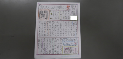 どんな見出しにすれば読み手を引き付けられるのかを考えながら、はがき新聞づくりに取り組みました。