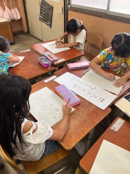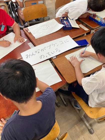 お話を聞いて想像しながら絵に描きたい場所を選んでいきました。アイデアスケッチにどんな生き物を描こうか、他にも何が出てくるかなとイメージを膨らませながら描いていました。