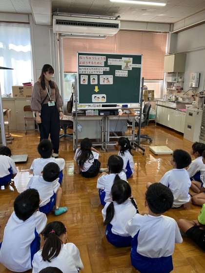 身体計測がありました。身長や体重を測る前に熱中症についての話を聞きました。熱中症を予防するためにどうすればいいのか、詳しく知ることができました。