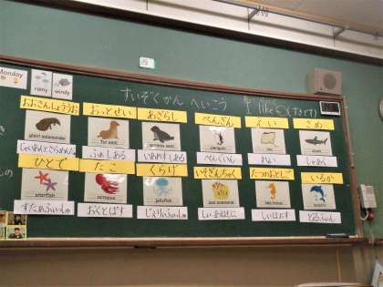 英語の学習では、水族館の生き物を学習しています。