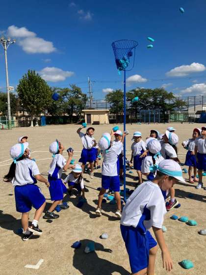 1年 体育「ゲットだせ〜きょうりょく?ちょうせん?えがお〜」