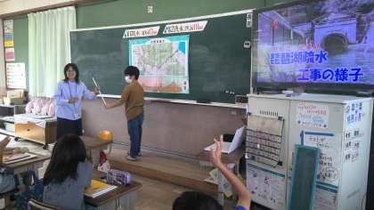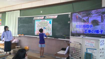 琵琶湖疏水はどのようにして作られたのか、琵琶湖疏水アカデミーの方にゲストティーチャーとして来てもらいお話を聞きました。たくさんの資料を見せていただきました。今後の学習にいきたいです。