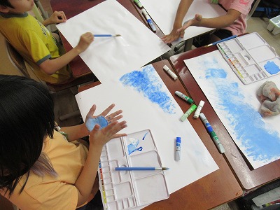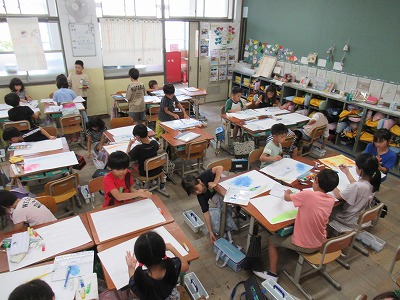図画工作では、お話の絵の制作を進めています。