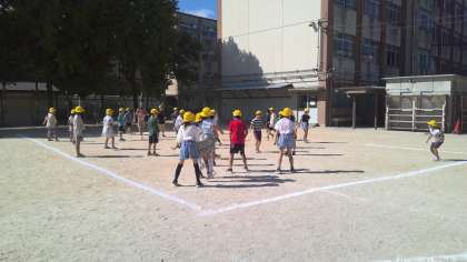 「みんなの影が同じ方向を向いていたよ。」「影はずっと一緒についてきたなあ…」「影の反対側には太陽があったよ」「しゃがんだら影も小さくなった!」などとたくさんの気づきがありました!
