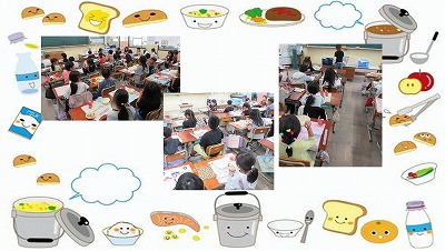 給食の「かしわのすき焼き」をおいしそうにもりもり食べる子どもたち!