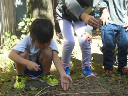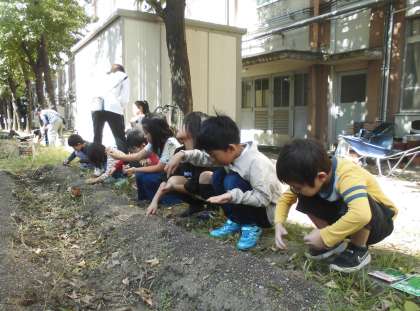 ひまわり学級では学級の畑に野菜の種をまきました。