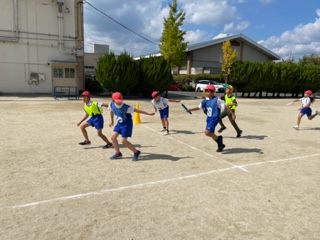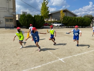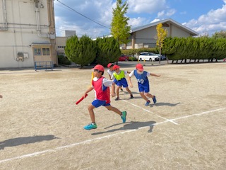 体育の学習では、リレーが始まりました。