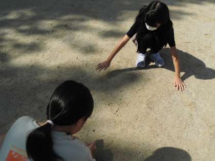 「日向のほうがあつい!」「日陰は触ってみると湿っていたよ」などと、気づいたことがたくさんありました。