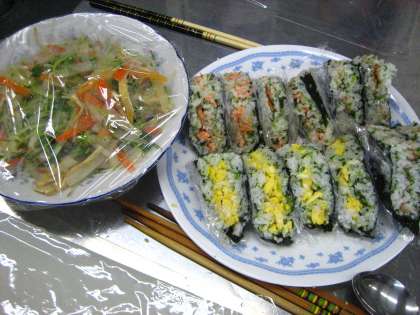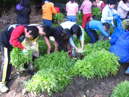 子どもたちは,大きいスーパーの袋に菜を入れて,にこにこ顔で帰りました。