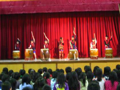 中間休みに和太鼓の発表会が,ありました。見に来た子どもたちは和太鼓の迫力に感動していました。きっと,「たたいてみたいなあ。」と思ったことでしょう。