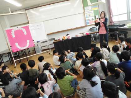 歯科衛生士の方に来ていただき、歯みがきの大切さについて学びました。