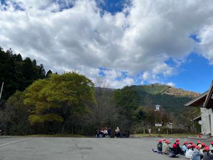 所内を散策するスコアオリエンテーリングが始まります。大自然の中グループで回ります。