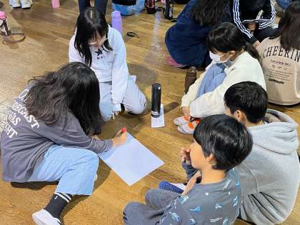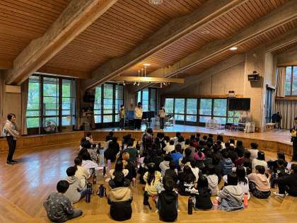 オリエンテーションルームで朝のつどいを行いました。リーダーの代表児童が1日目のふりかえりを発表してくれました。その発表を受けて、これから始まる2日目の活動に向けて、グループで活動のめあてをたてました。今日の夜の活動では、キャンドルファイヤーがあります。大いに盛り上げてほしいと思います。