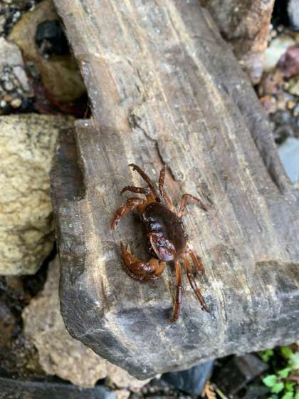 森には見たことないきのこ、近くに流れる小川にはサワガニ。豊かな自然に出会い、ワクワクドキドキしてます。
