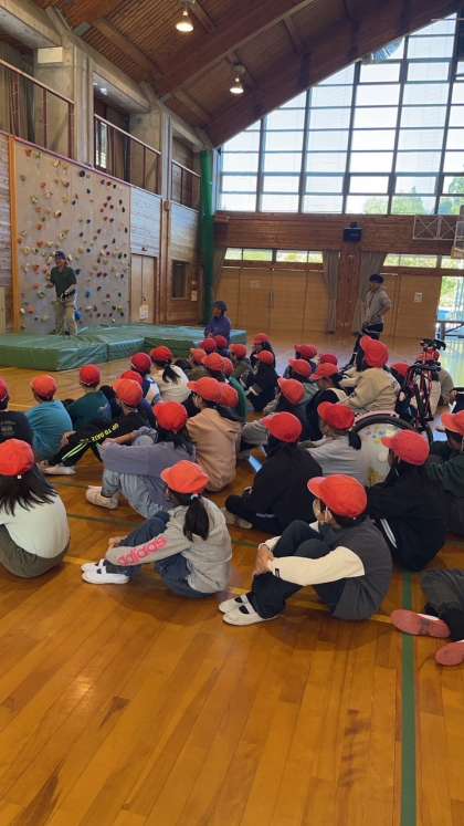 後半がスタートしました。先ほどアスレチックをしたグループは、ボルダリングです。