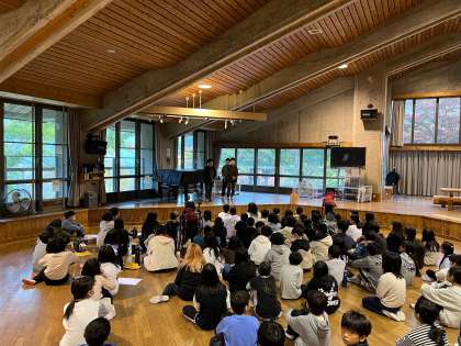 朝のつどいです。これまでの反省を活かして、最終日活動していきましょう。