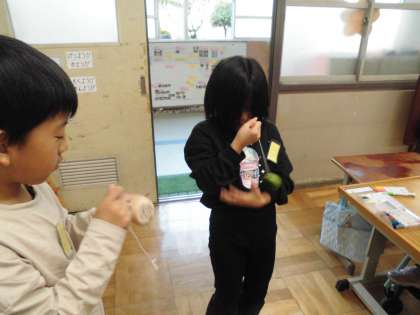 まずはヨーヨーで遊んで、回る様子を見ながら