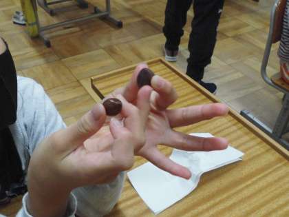 磨いたどんぐりを見て
