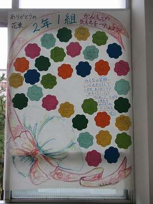 人権参観に併せて、廊下には「ありがとうの花束」を掲示しています。