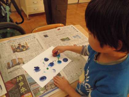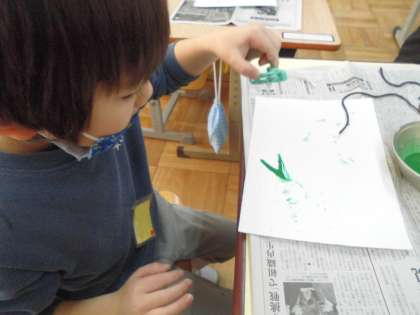 絵の具をつけて画用紙にスタンピングしました。