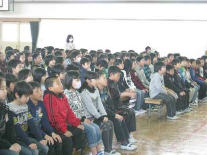 6年生「旅立ちの言葉」では,6年生から在校生へのバトンを託す言葉を受けて,5年生のコールと歌が館内に響きます。