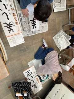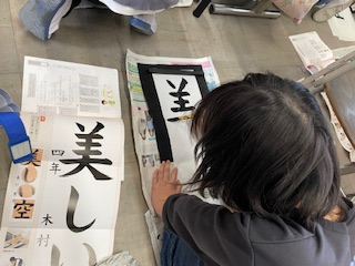 長い半紙に書くのが難しそうにしていましたが、
